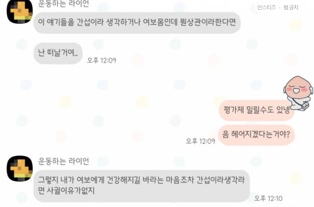 다음은 해당 게시물에 올라온 글쓴이가 올린 남자친구와 나눈 대화 내용이다.