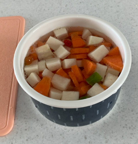 아작아작한 식감에 새콤하고 시원한 맛이 치킨과 궁합이 좋아서 느끼한 음식을 먹기 힘든 사람도 치킨무를 곁들여 먹으면 효과적이다.