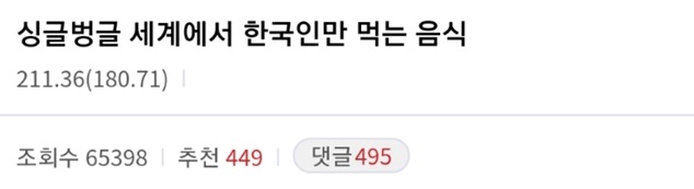 작성자 A씨는 “싱글벙글 세계에서 한국인만 먹는 음식” 라는 제목의 글로 많은 이들의 궁금증을 유발 시켰다.