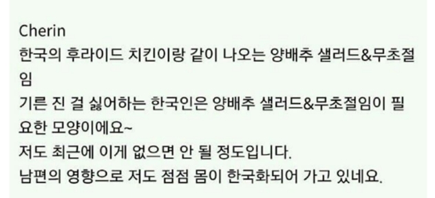A씨는 “서양에는 코울슬로, 샐러드나 피클이라는 대용품이” 라고 전했다.