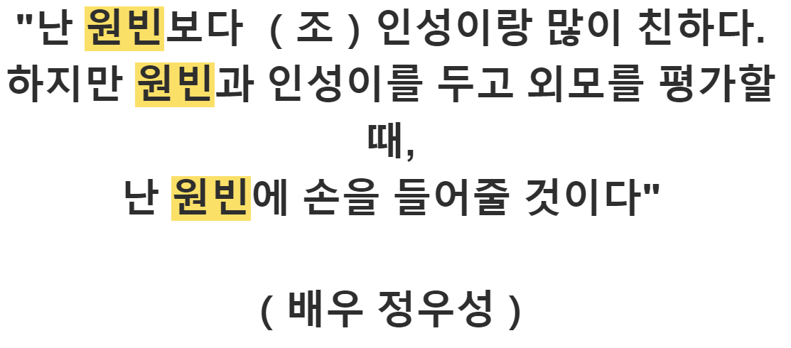 어릴 적부터 연예인이 되고 싶었는지 가출을 하다가 걸려 집으로 끌려가기도 했는데, 원빈을 데리고 집에 돌아가는 부모가 말하길 “연예인 되기가 쉬운 줄 아냐? 강릉 시내만 나가도 너보다 잘생긴 사람 널렸다.