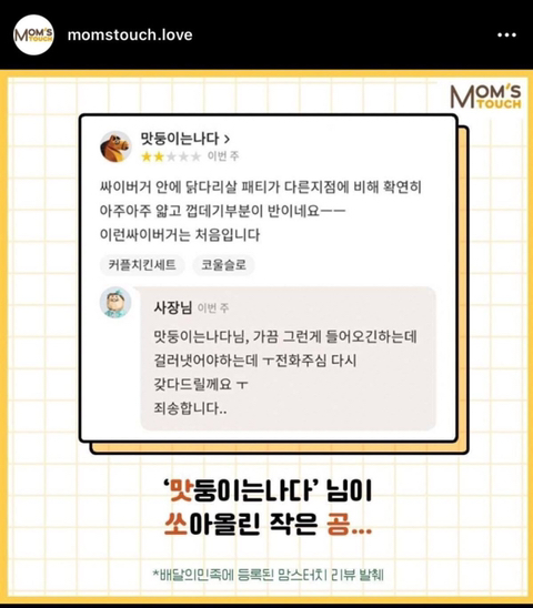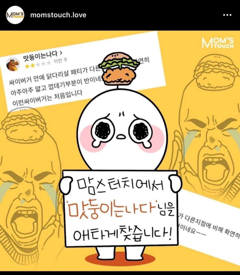 이후 맘스터치 본사 측에서 ‘맛둥이는나다’ 고객을 찾기 시작했다.
