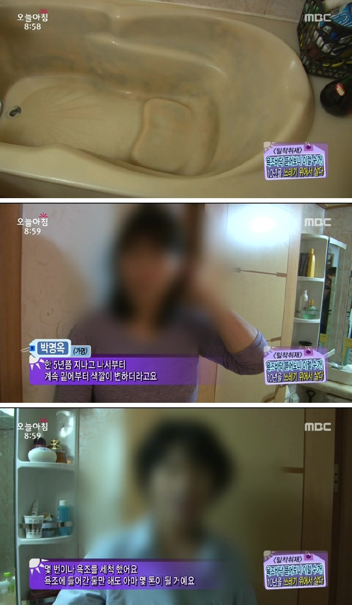아파트 주민은 “한 5년쯤 지나고 나서부터 색깔이 변하더라”, “몇 번이나 욕조를 세척했다. 욕조에 들어간 물만 해도 몇 톤이 될 거다”고 말했다.