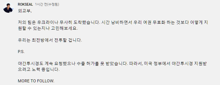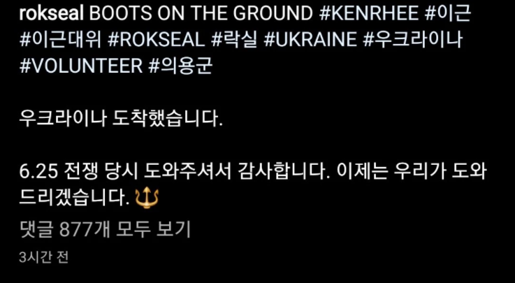 지난 7일 해군특수전전단(UDT/SEAL) 대위 출신 이근은 자신의 인스타그램과 유튜브 커뮤니티 채널에 “저의 팀은 우크라이나에 도착했다”라고 알렸다.
