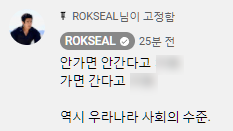 이에 이근은 “안 가면 안 간다고 XX. 가면 간다고 XX. 역시 우리나라 사회의 수준”이라고 댓글을 상단에 고정시켰다.