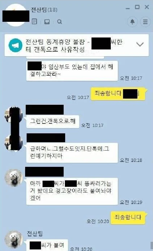 최근 무례한 언행으로 누리꾼들을 분노하게 한 회사 단체대화방이 논란을 모으고 있다.