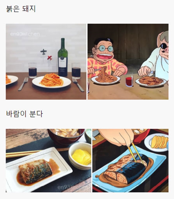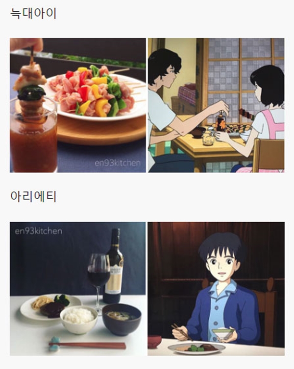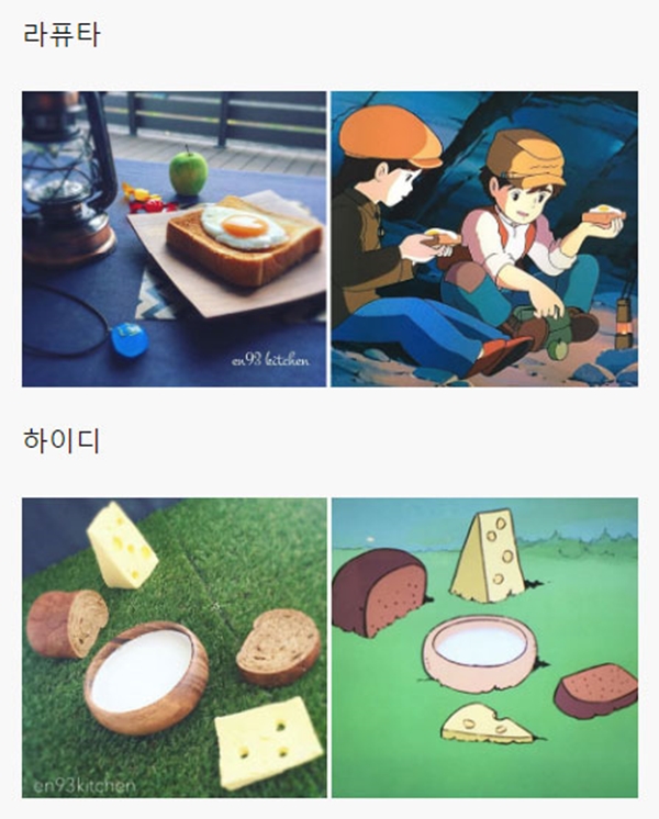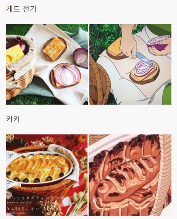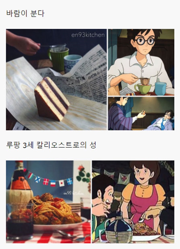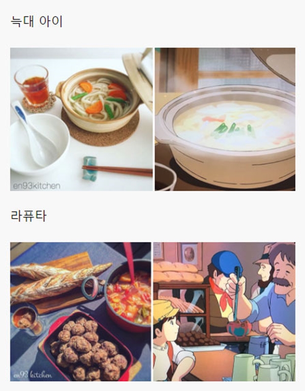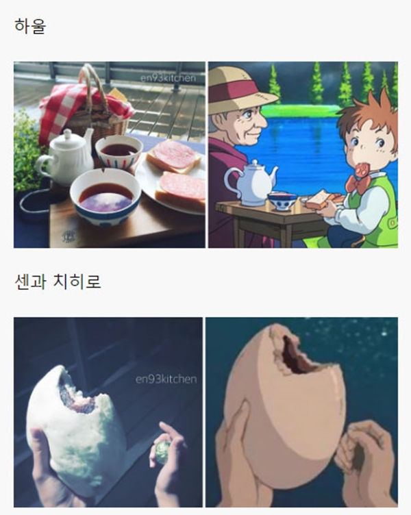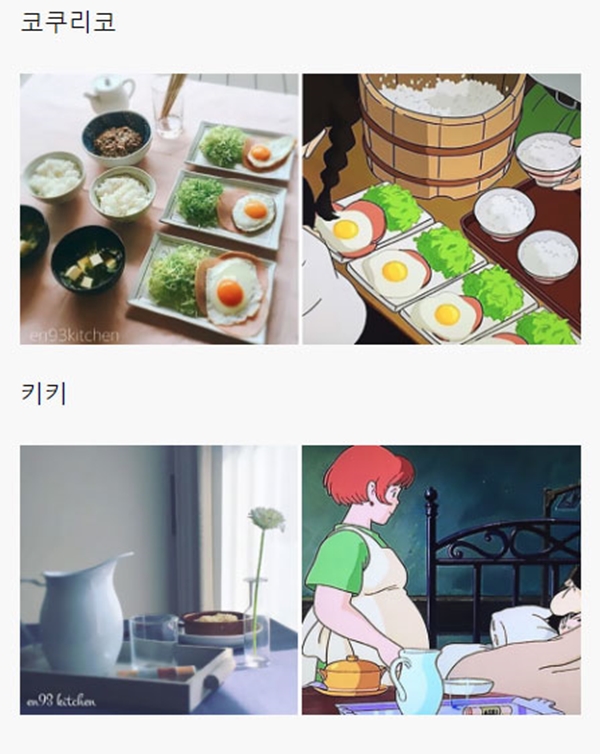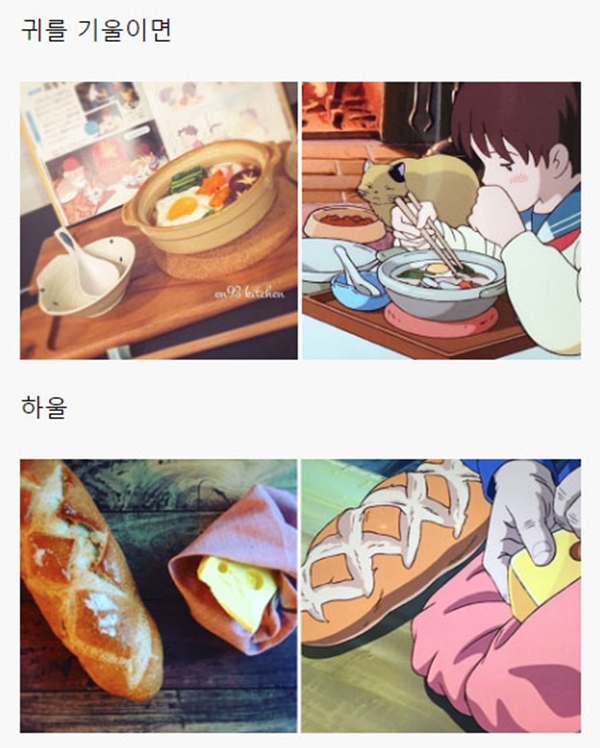 해당 게시물에는 각종 일본 애니메이션, 지브리 스튜디오에서 제작한 애니메이션을 포함해서 최근 세계적으로 선풍적인 인기를 끌었던 ‘너의 이름은’ 같은 최신 애니메이션에 등장하는 음식들을 직접 만들어 본 블로거들의 사진들이 올라와 있었다.
