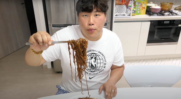공개된 영상 속에서 천뚱은 특유의 먹방 도구인 집게를 들고 짜파게티 먹방을 선보였다.