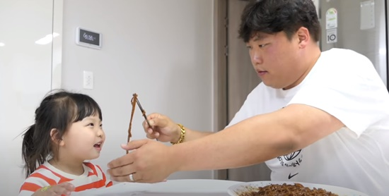 그의 딸인 채민이도 깜짝 출연해 함께 먹방을 이어나갔다.