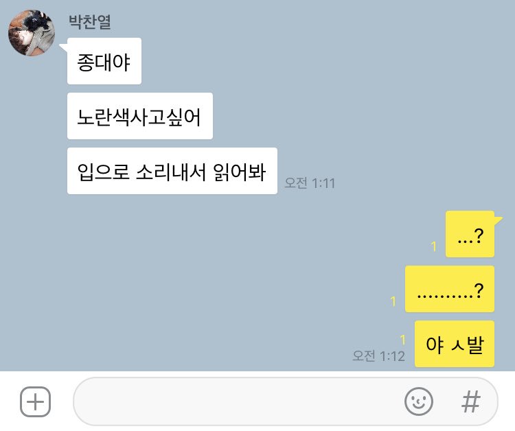 바로 “노란색사고싶어”, “옷파랑색사고싶어”라는 문구다.