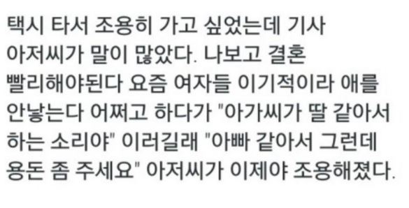 택시를 타서 기사님이 말을 거실 때가 있다.