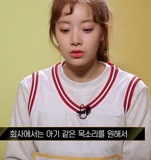 많은 관리를 소속사에게 강요받는 걸그룹 중 ‘아기 목소리’를 강요 받은 멤버가 있다고 한다.
