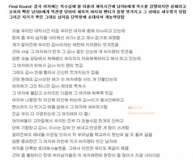 6.체육시간에 여자1이 복수하려했는데 실패하고 남자 2가 오히려 옷을 다 벗겨서 새우꺾기함.