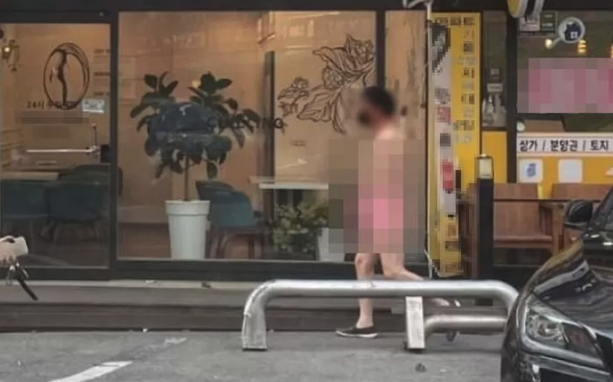 사진 속 남성은 검은색 마스크에 신발만 신은 채 알몸으로 거리를 활보하고 있었다.