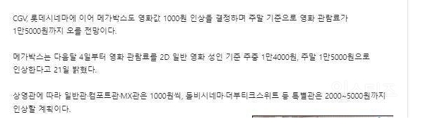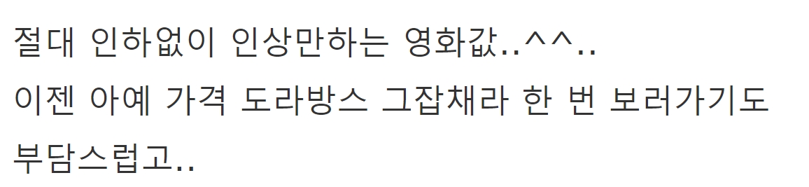A씨는 “절대 인하없이 인상만하는 영화값..^^..” 라고 전했다.