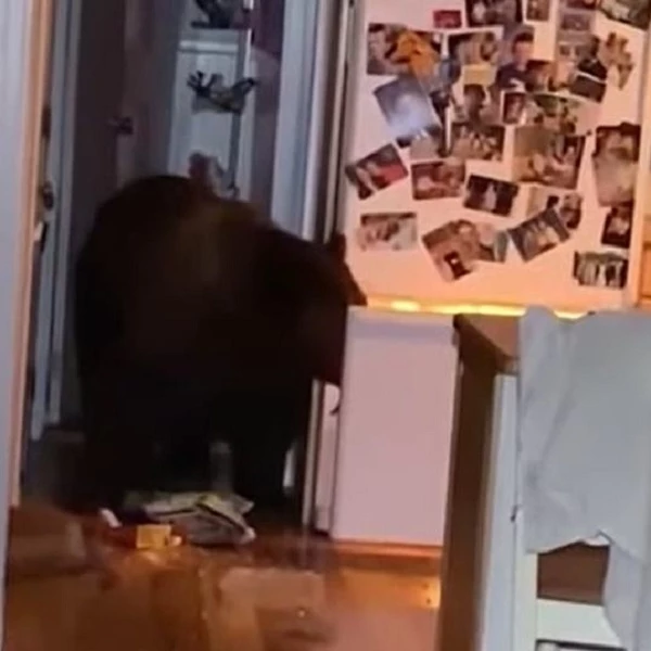지난달 30일(현지시각) CBS 세크라멘토 등 미국 현지 언론에 따르면 네바다시티에 사는 앨런·맬리사 부부는 28일 오전 5시쯤 문이 부서지는 소리에 놀라 잠에서 깨 침실을 나가보니 거대한 검은색 곰이 문을 부수고 집에 들어와 냉장고 앞에 있었다.