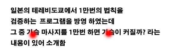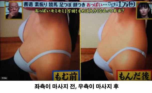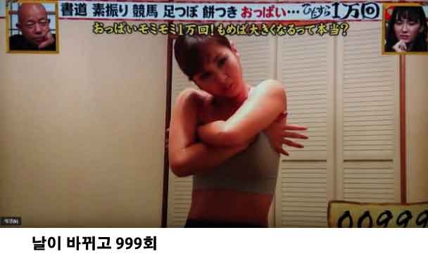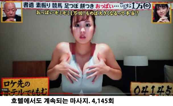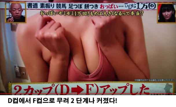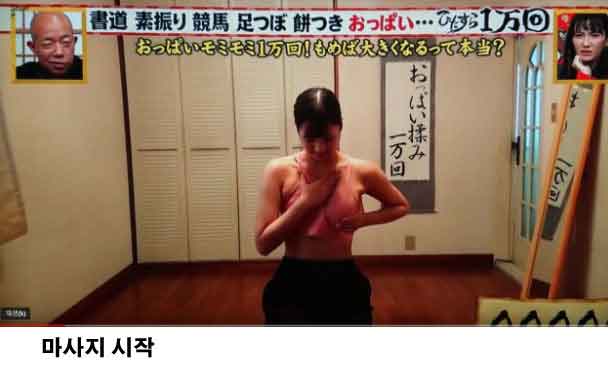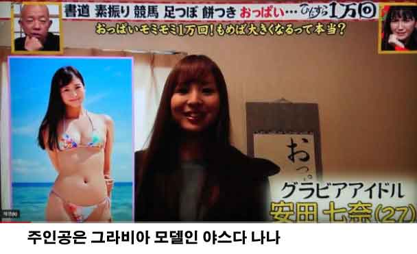 해당 게시물에는 실제 일본의 한 프로그램에서 그라비아 모델 ‘야스다 나나’가 가슴 마사지 1만법 법칙을 증명한 캡처화면이 첨부돼 있었다.