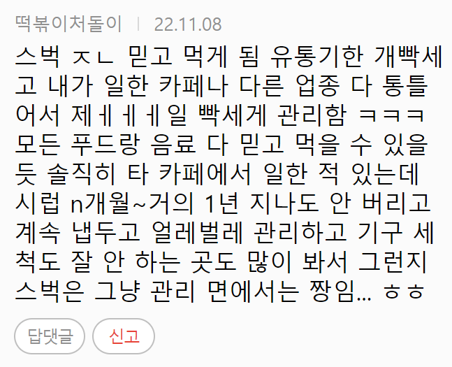 이 소식을 접한 누리꾼들은 “개 에바야”, “꿀팁 레전드 머음집”, “당연히 이런거 말 들어야함” ,”내가 잘 아니까 할 수 있는 말들” ,” 방송국 찌라시 나라면 절대 안믿음” ,”스벅은 진짜 무조건 믿고 먹어도 댐” ,”변호사 구하는 꿀팁” 등의 다양한 반응을 보이고 있다고 한다.