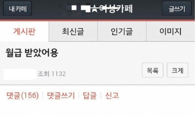 ‘월급 받았어용’이라는 제목의 글로 많은 이들이 ‘도대체 얼마길래 자랑까지하지..?’하고 들어가봤더니 100만 원짜리 수표가 15장 있는 것을 볼 수 있었다.