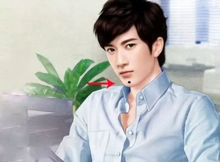 앞에서 언급한 것과 같이, 남성의 턱 밑에 난 점은 재물, 행운을 가져다준다.