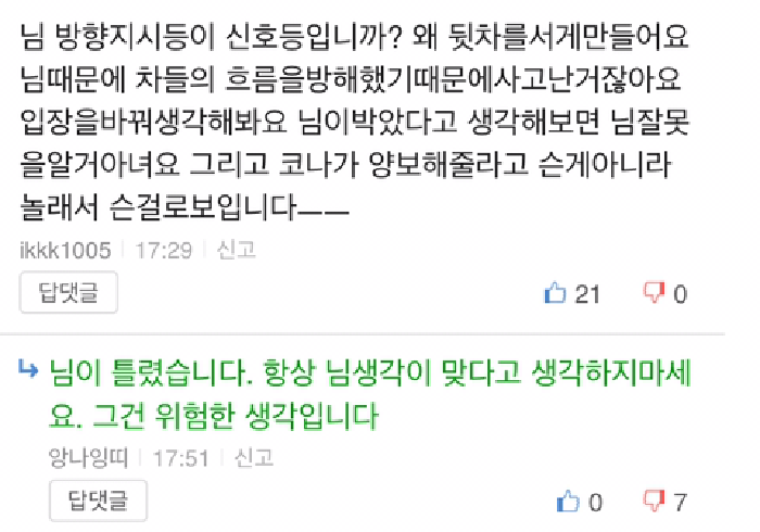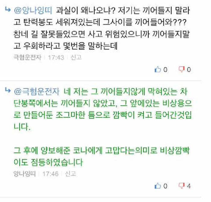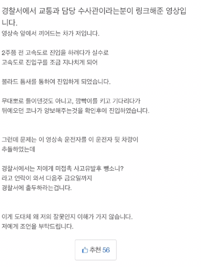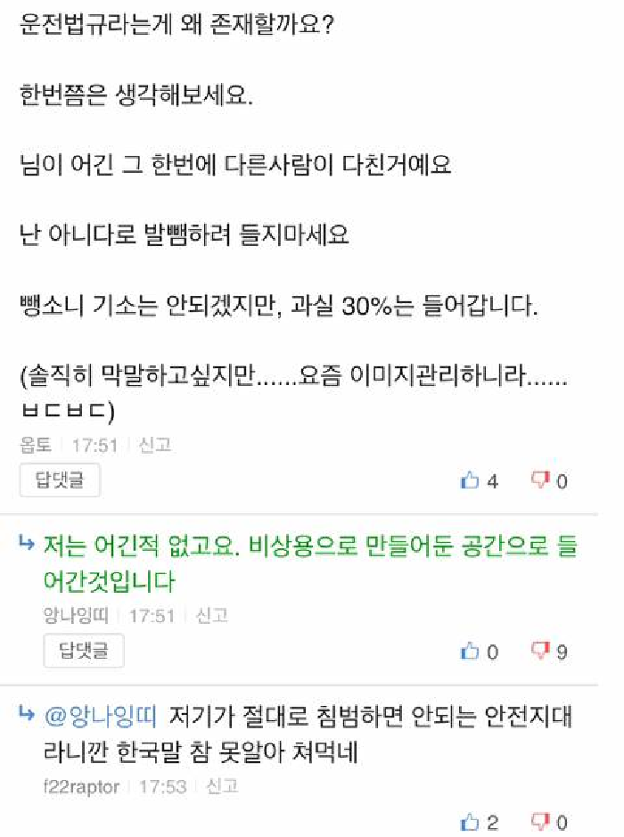 커뮤니티 단체로 ‘화병’나게 한 자신이 ‘무개념’인지 모르는 운전자 ‘빌런’ 과거 온라인 커뮤니티의 유저들을 단체로 화병나게 한 글이 화제를 모았다. ADVERTISEMENT 글쓴이는 자신이 교통사고를 당했고 억울한 상황이라며 말문을 열었다. ADVERTISEMENT ADVERTISEMENT ADVERTISEMENT 보배드림