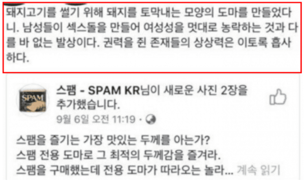 “너무 과한 반응인데?”, “돼지 저금통에 돈 넣어도 불편하다고 할 기세다”, “그러면서 스팸은 잘도 먹겠지”