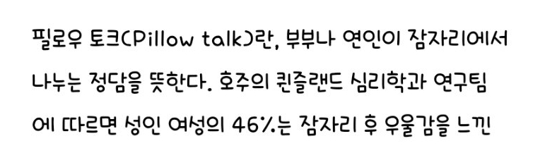 A씨는 “필로우 토크(Pillow talk)란, 부부나 연인이 잠자리에서 나누는 정담을 뜻한다.” 라 말문을 열었다.