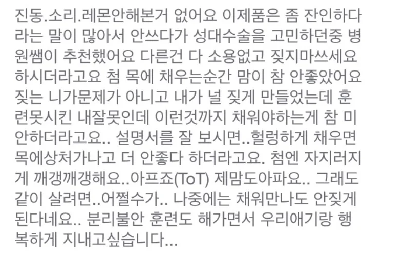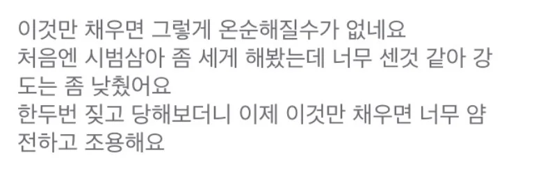 그 외에도 “이것만 채우면 그렇게 온순해질 수가 없다”, “마음은 아프지만 같이 살려면 어쩔 수가 없다” 등의 후기도 있었다.