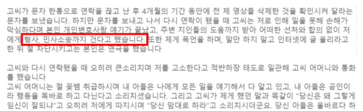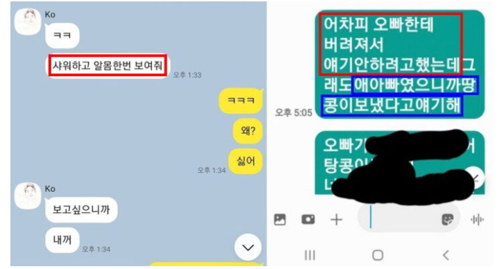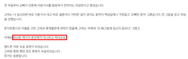 어차피 오빠한테 버려져서 얘기 안 하려고 했다며 ”그래도 애 아빠였으니까 땅콩이 보냈다고 얘기해.”라고 보낸 문자 내역이 공개돼 엄청난 이슈가 됐다.