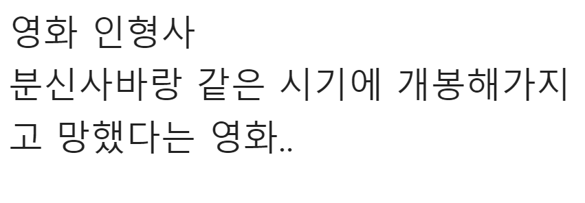 2004년에 개봉한 공포영화 ‘분신사바’가 전국 관객수 100만명을 넘기며 엄청난 흥행을 하면서 동시에 개봉해 묻히게 됐다는 한 공포영화 ‘인형사’가 알려져 누리꾼들의 이목을 집중시켰다.