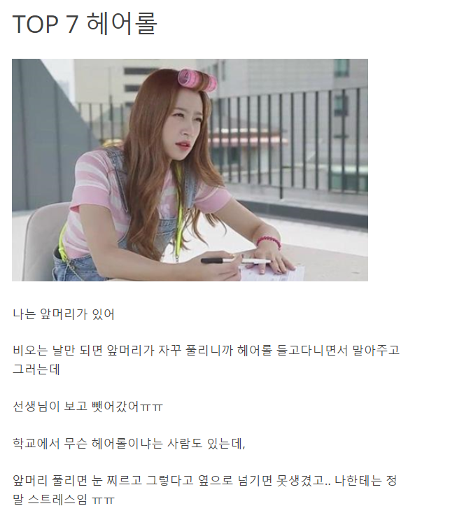 이어 “너희들은 학창시절에 뺏겼던 물품 중에 가장 이해가 안가는건 뭐야..? 난 10가지 있는데 순위대로 적어볼게”라며 자신의 경험을 토대로 순위를 정하여 나열했다.