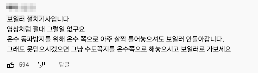 해당 영상을 접한 네티즌들은 “유익한 정보 감사합니다”, “와 이건 진짜 몰랐다”, “보일러 설치기사인데 절대 이럴 일 없다” 등의 반응을 보였다.