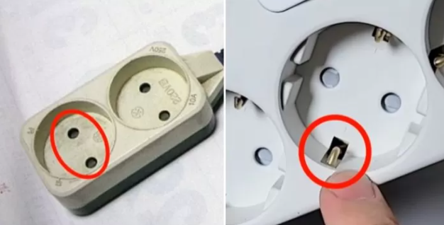 콘센트 홀을 잘 살펴보면 금속으로 접지 단자가 있는걸 확인할 수 있다.