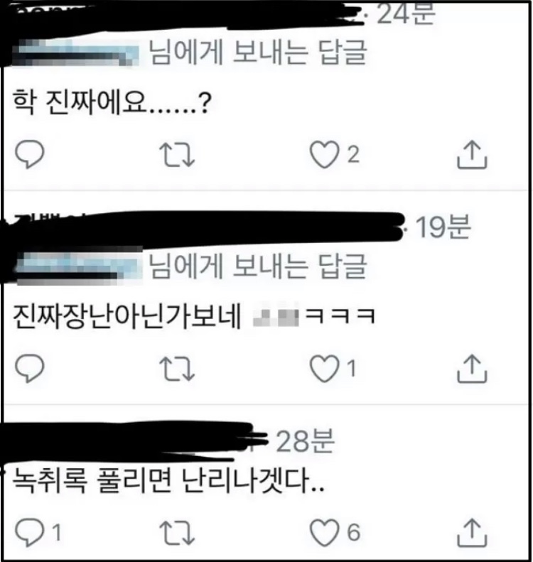지난 22일 아이린의 갑질 의혹이 빠르게 확산되던 시기에 A씨는 “헐 터질 게 터졌구나 진짜ㅋㅋㅋ”라는 짧은 글을 게재했다.