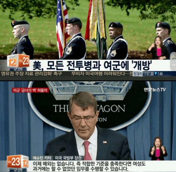 똑같은 기준을 통과한다면 남자 여자 할 것 없이 전투병과에 들어갈 수 있도록 수정된 것이다.