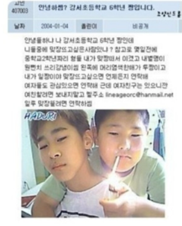 ㅋㅋ 아 뭐; 불만있으면 우리 대장 ‘도곡동 불주먹 에이즈’랑 붙으시던가요~ㅋㅋ아 ㅋㅋ 중학교 2학년짜리 형들 이김 ㅋㅋ 앜ㅋ그리고 근황.