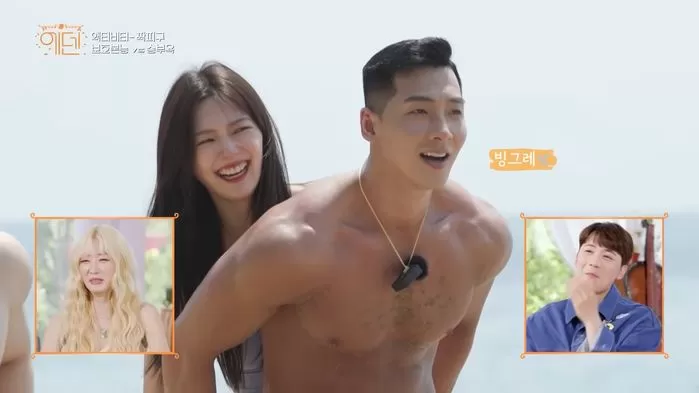 양호석은 팔을 뒤로해 선지현을 감싸며 그와 한 몸처럼 움직이려 노력했고, 스튜디오에서 VCR을 통해 이를 보는 MC 시미즈는 “너무 닿아있어요”라고 말했다.