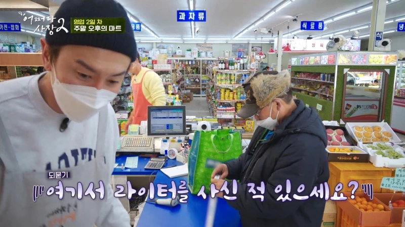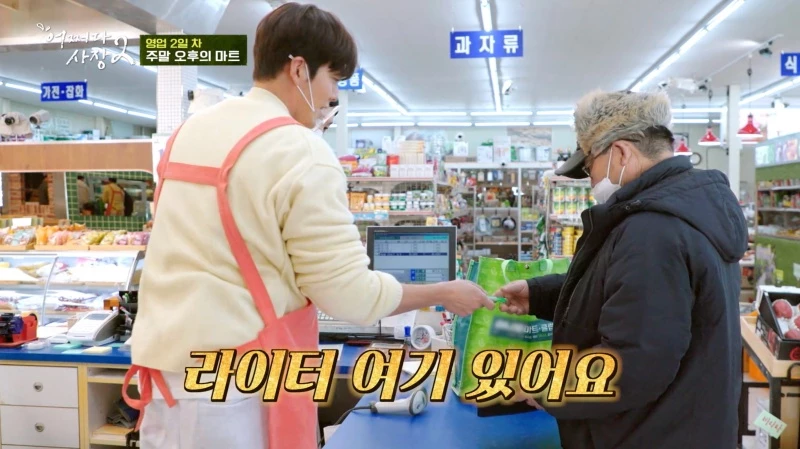 마트 아르바이트가 처음인 이광수와 김우빈은 우왕좌왕하면서 오히려 노인에게 “여기서 라이터를 산 적 있으세요?”라고 되물었으나, 노인은 “라이터는 그냥 서비스로 주는 것”이라고 답했다.