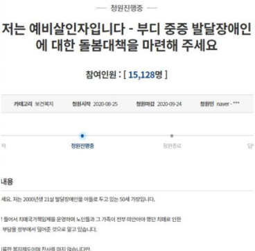 정말 억울한 것은, 왜 정말 국가의 도움이 절실한 저희같은 발달장애 가족에게