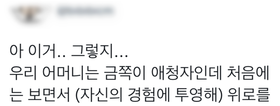 A씨는 “울엄마도 티비를 그렇게 다 챙겨보면서” 라고 전했다.