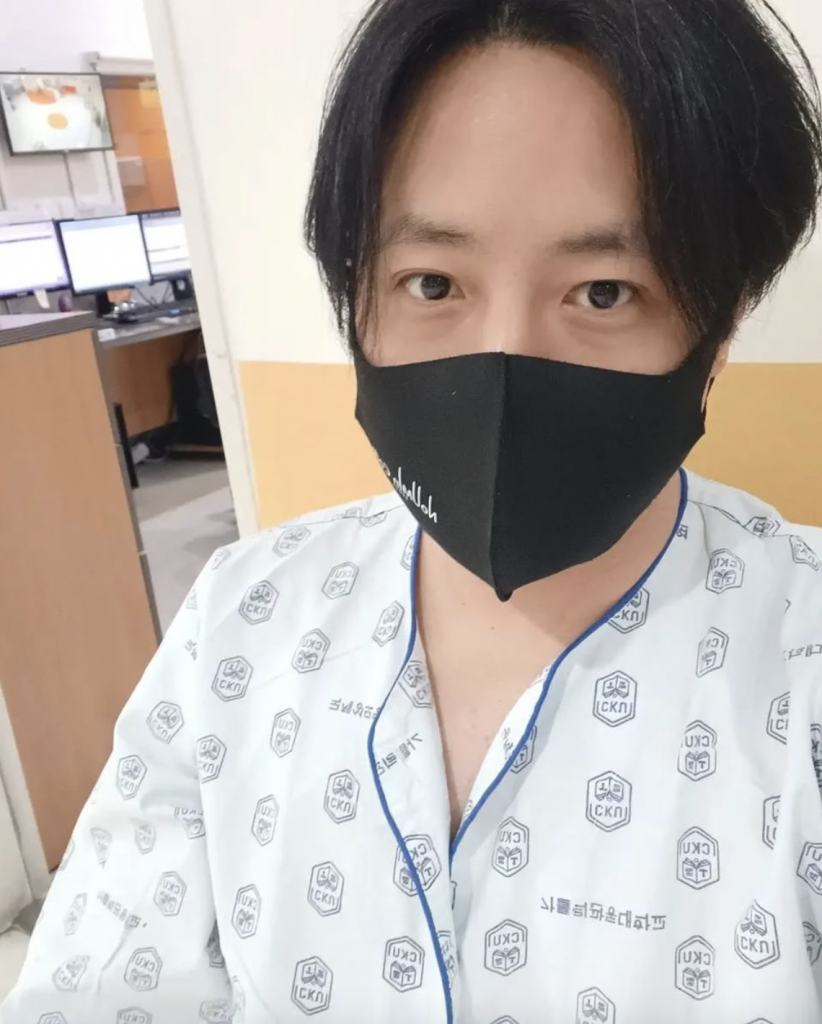 공개된 사진에는 노유민이 병원복을 입은 채 수술을 앞두고 있는 모습이 담겨있었다.