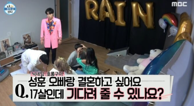 나 혼자 산다 멤버들끼리 ‘온라인 팬미팅’을 준비하는 과정에서, 박나래가 성훈에게 ”성훈 오빠랑 결혼하고 싶어요. 17살인데 기다려 줄 수 있나요?”라 예상 질문을 건넸다.