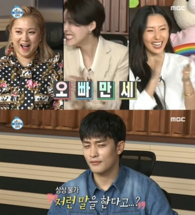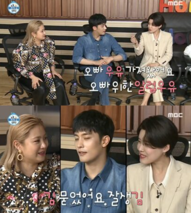 장도연과 박나래가 어색한 분위기를 수습하기 위해 ”오빠 우유 가져왔어요, 오빠를 위한 알럽우유”, ”김 묻었어요, 잘생김”라 성훈에게 표했다.