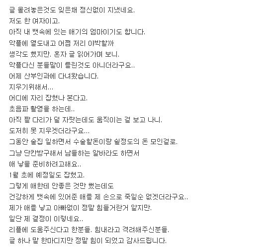 이에 누리꾼들에게 응원과 위로를 해달라며 글을 마쳤다.
