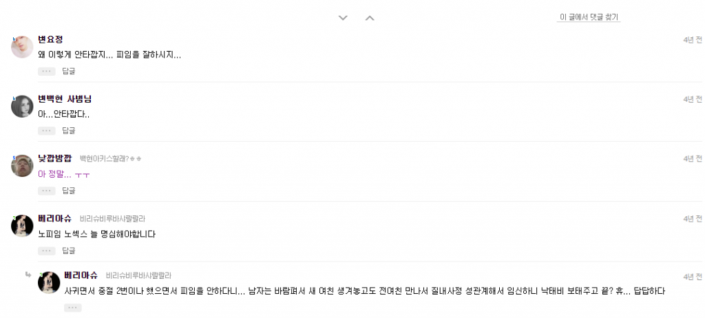 자신은 지방에 살고 남자친구는 서울에 살았었고 연애 초반에 ‘질.내.사.정’을 해버려서 임신했다고 한다.