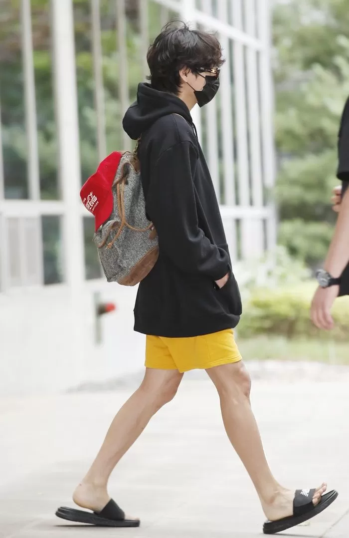 공항에는 해당 연예인들을 기다리는 기자와 팬들이 있었지만, 뷔는 곧장 차량에 탑승했다.