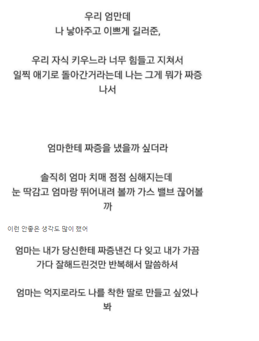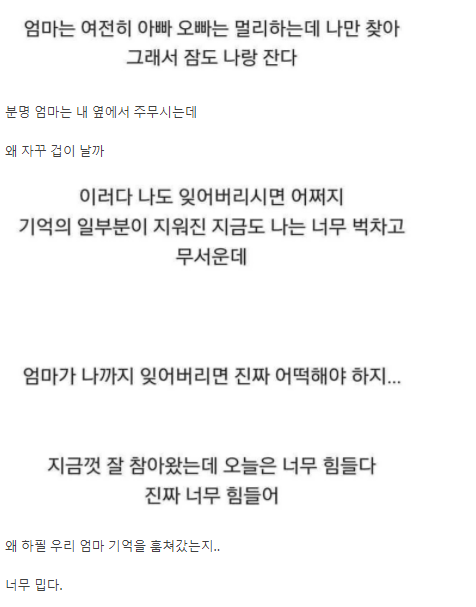 글을 작성한 A씨는 “우리 엄마는 치매야.”라는 제목의 글로 많은 이들의 이목을 집중시켰다.