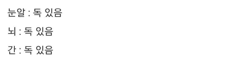 A씨는 “눈알 : 독 있음” 라고 전했다.