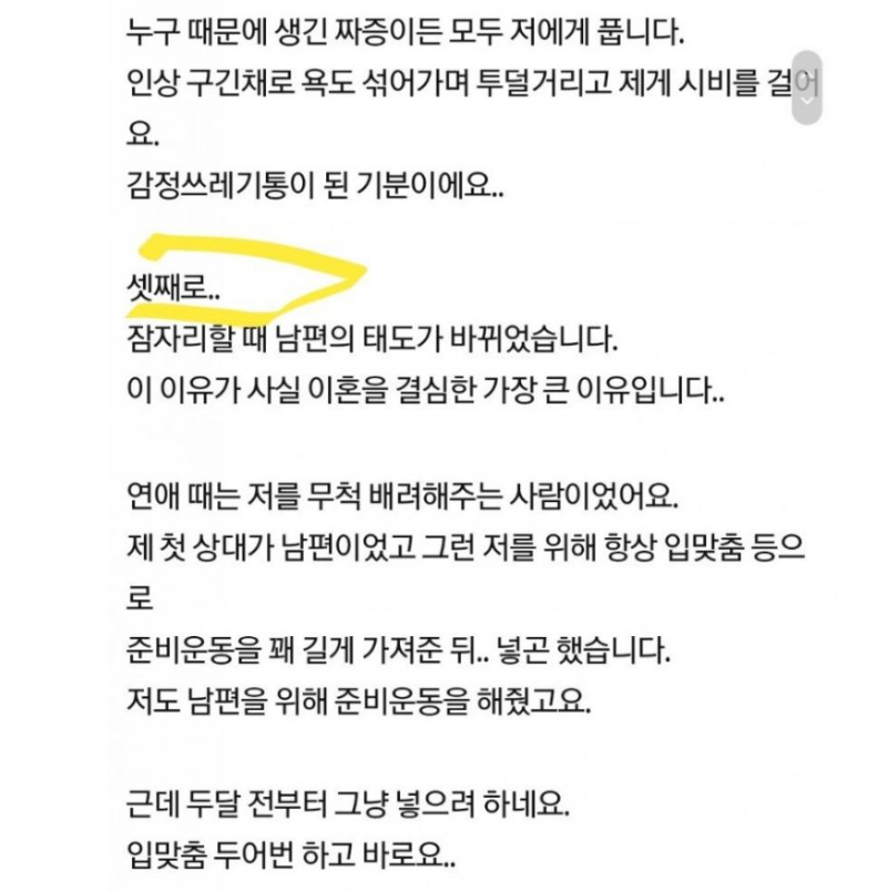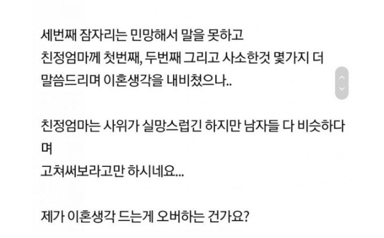 그래서 작성자는 결국 이혼을 생각 중이라고 하며 누리꾼들에게 조언을 부탁했다.