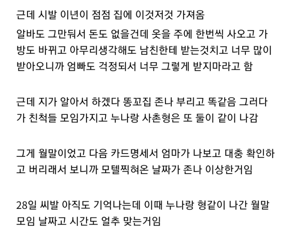 하지만 들킨 것은 카드명세서에 남아있는 결제내역 때문이었다.